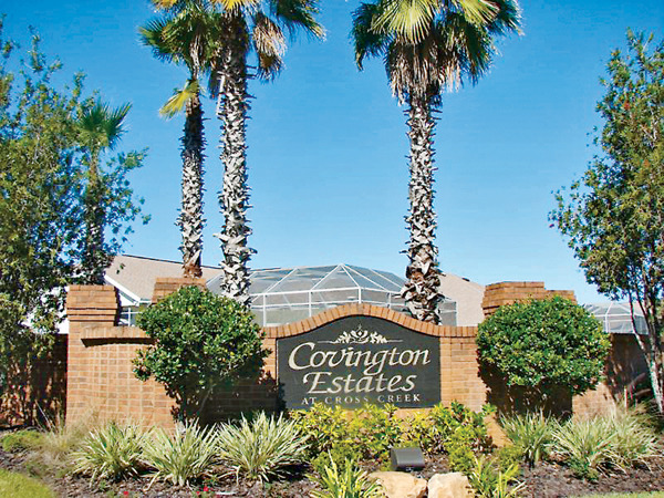 Sitting on approximately 35 acres, Covington Estates is a gated community in Cross Creek II that consists of 94 contemporary homes surrounded by wetland preserves. The subdivision broke ground in 2000.